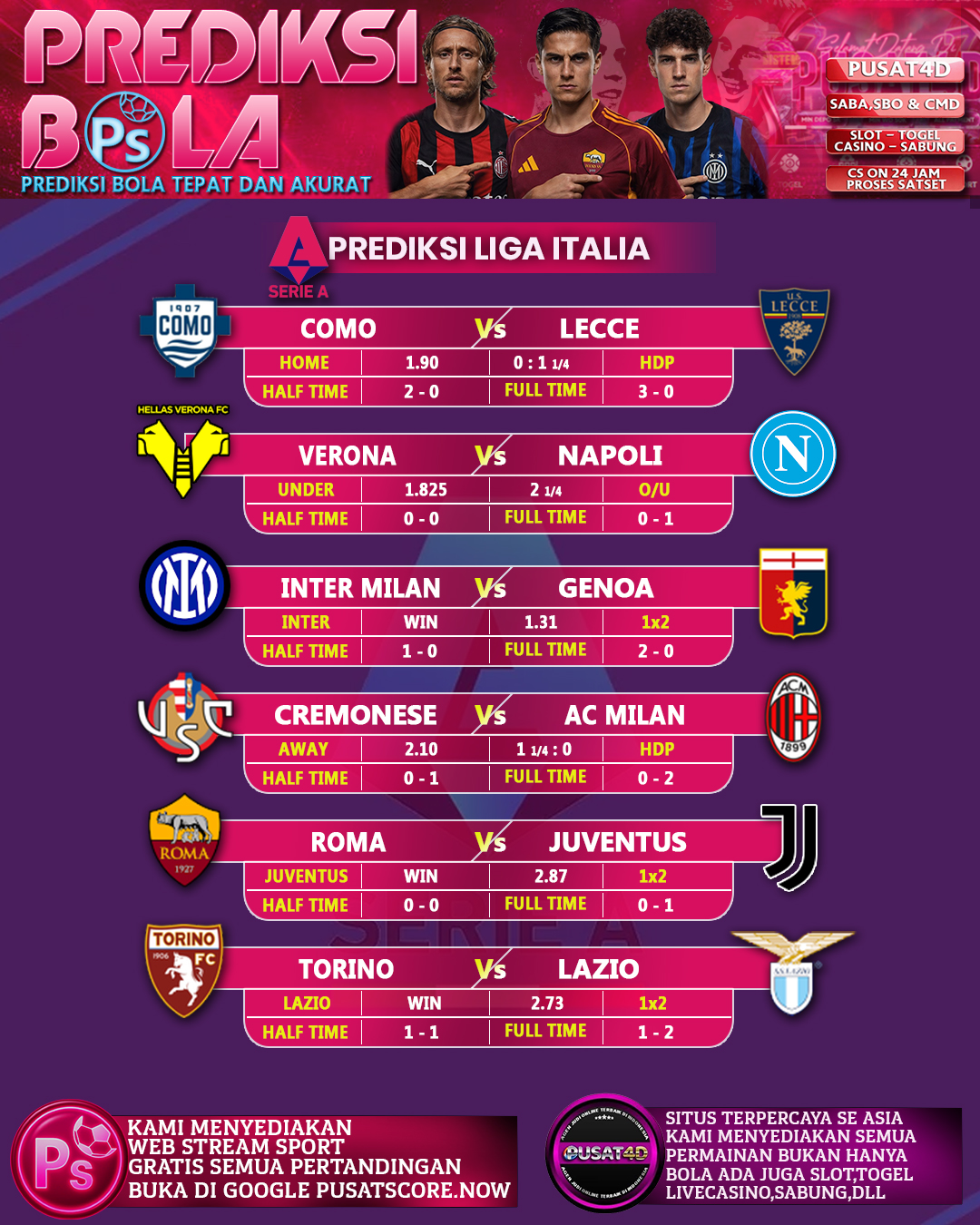PREDIKSI LIGA ITALIA TERAKURAT !